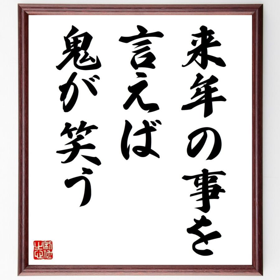 名言 来年の事を言えば鬼が笑う 額付き書道色紙 受注後直筆 Z3923 直筆書道の名言色紙ショップ千言堂 通販 Yahoo ショッピング